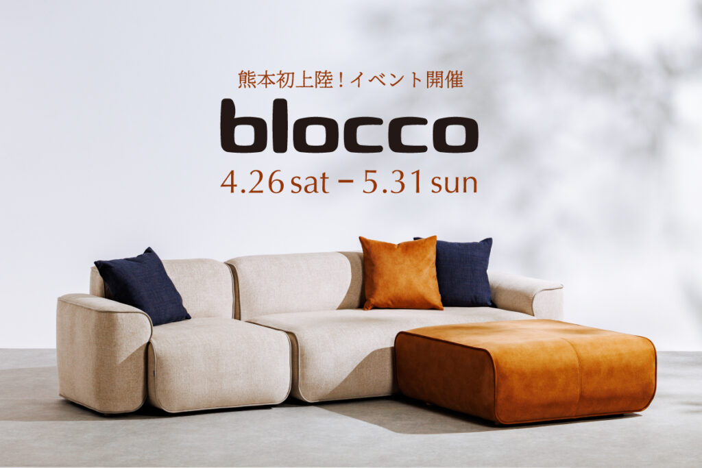 国産ソファブランド「blocco」の体感イベントが開催されます。