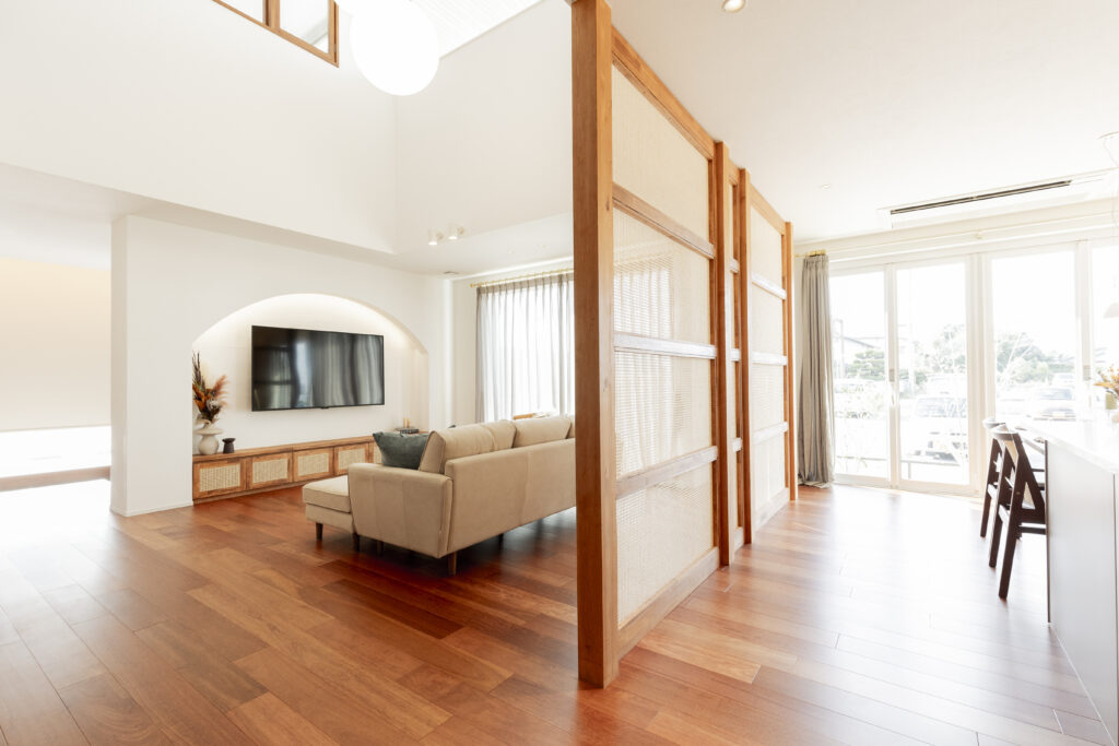展示場に入ってまず目を引くのが、明るく伸びやかなLDK空間。